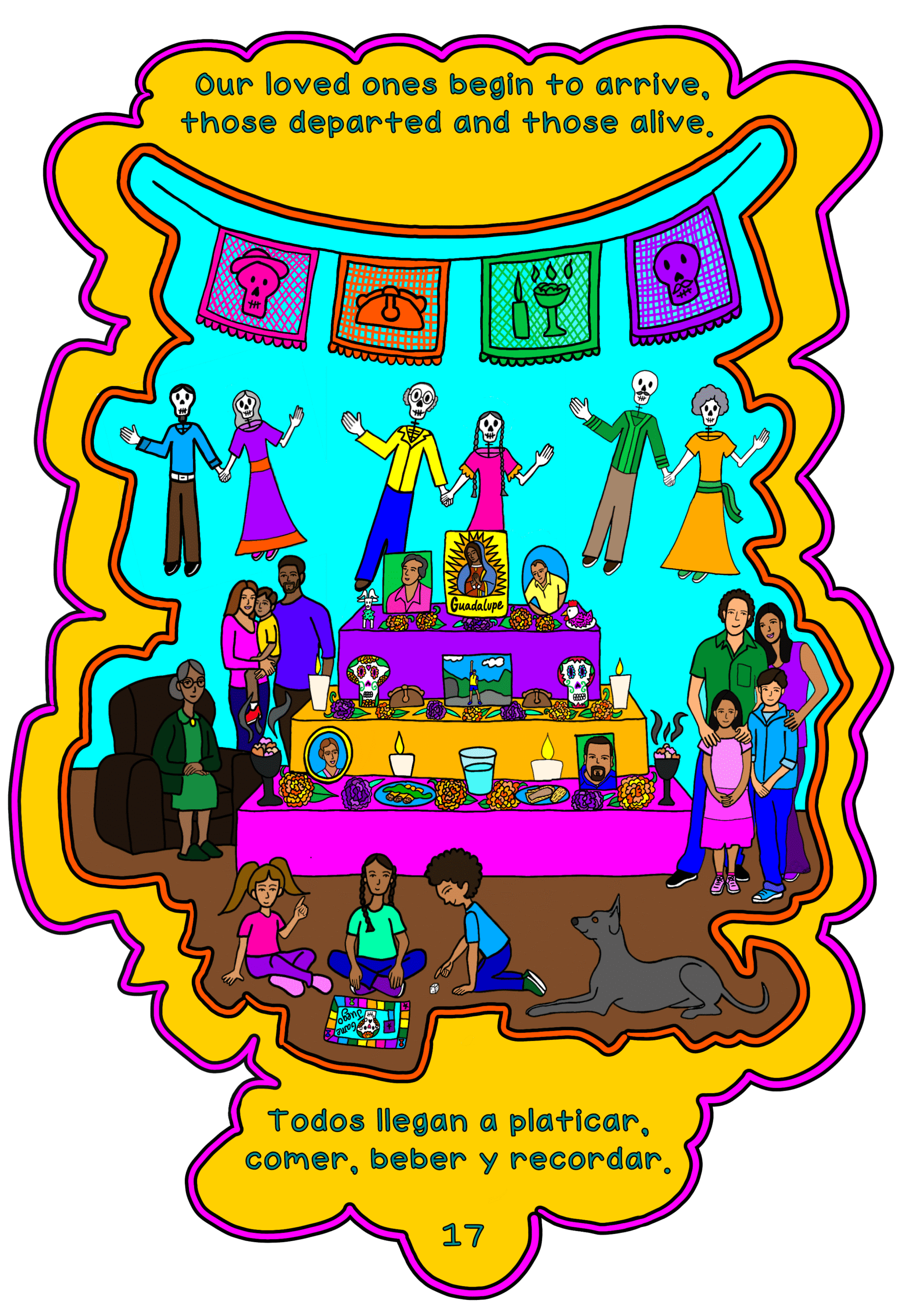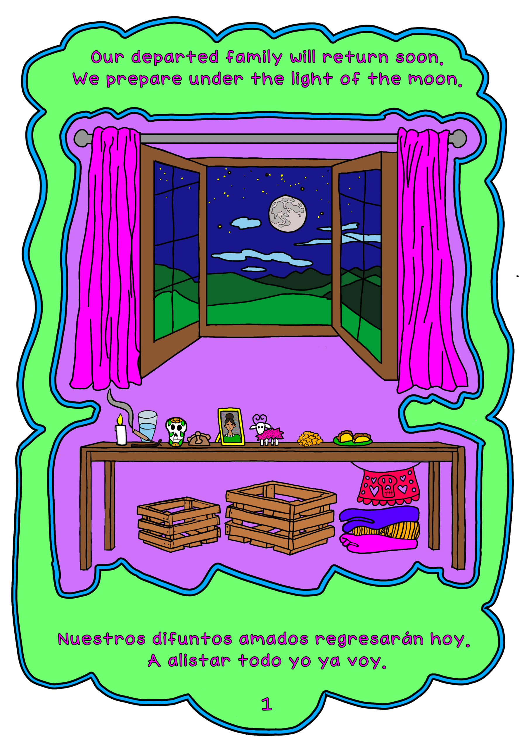 Celebrate Día de los Muertos with a magical bilingual journey! Ancestral Altars / Altares Ancestrales is a rhyming counting adventure that brings the colors, sounds, and traditions of the Day of the Dead to life in English and Spanish! As families prepare their altars to welcome loved ones from the spirit world, young readers learn to count from 1 to 15 through playful rhymes, vibrant illustrations, and heartfelt cultural meaning.