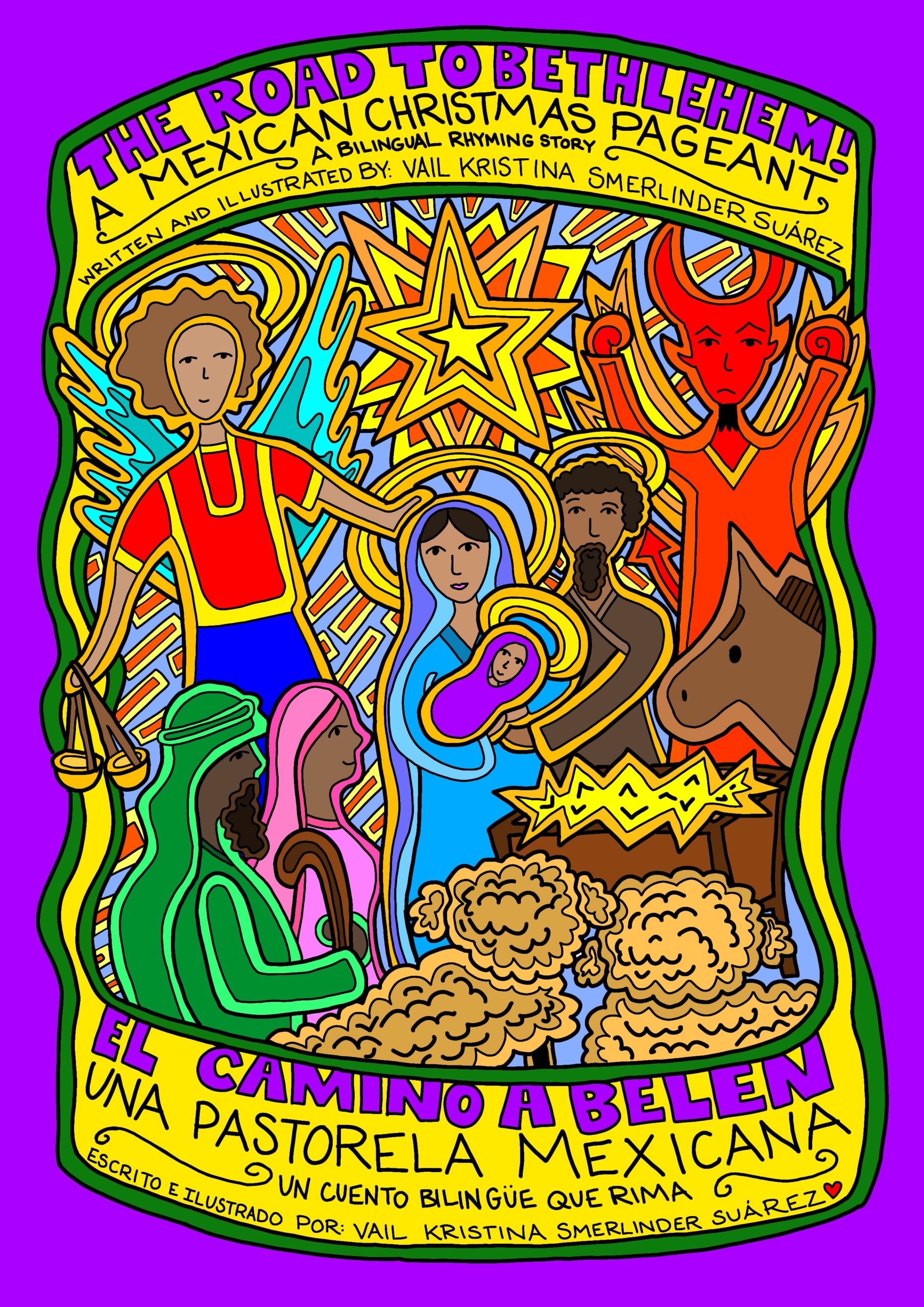 Bring the joy, humor, and wonder of Christmas to life with this beautifully bilingual (English–Spanish) retelling of the Nativity story! Road to Bethlehem / Camino a Belén follows a group of shepherds on their journey to meet the newborn Jesus—while mischievous devils try to distract them and brave angels guide them back to the star.
